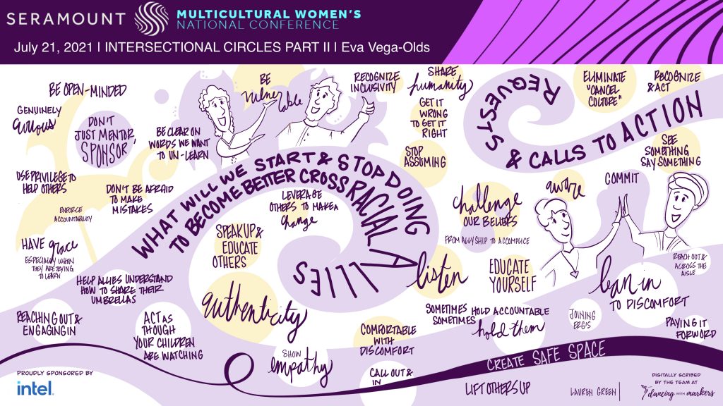 In this cross-cultural session, attendees will discuss the outcomes and responses from Part 1 Intersectional Circles in small groups via video to share and hear insights and strategies on how we can become better allies