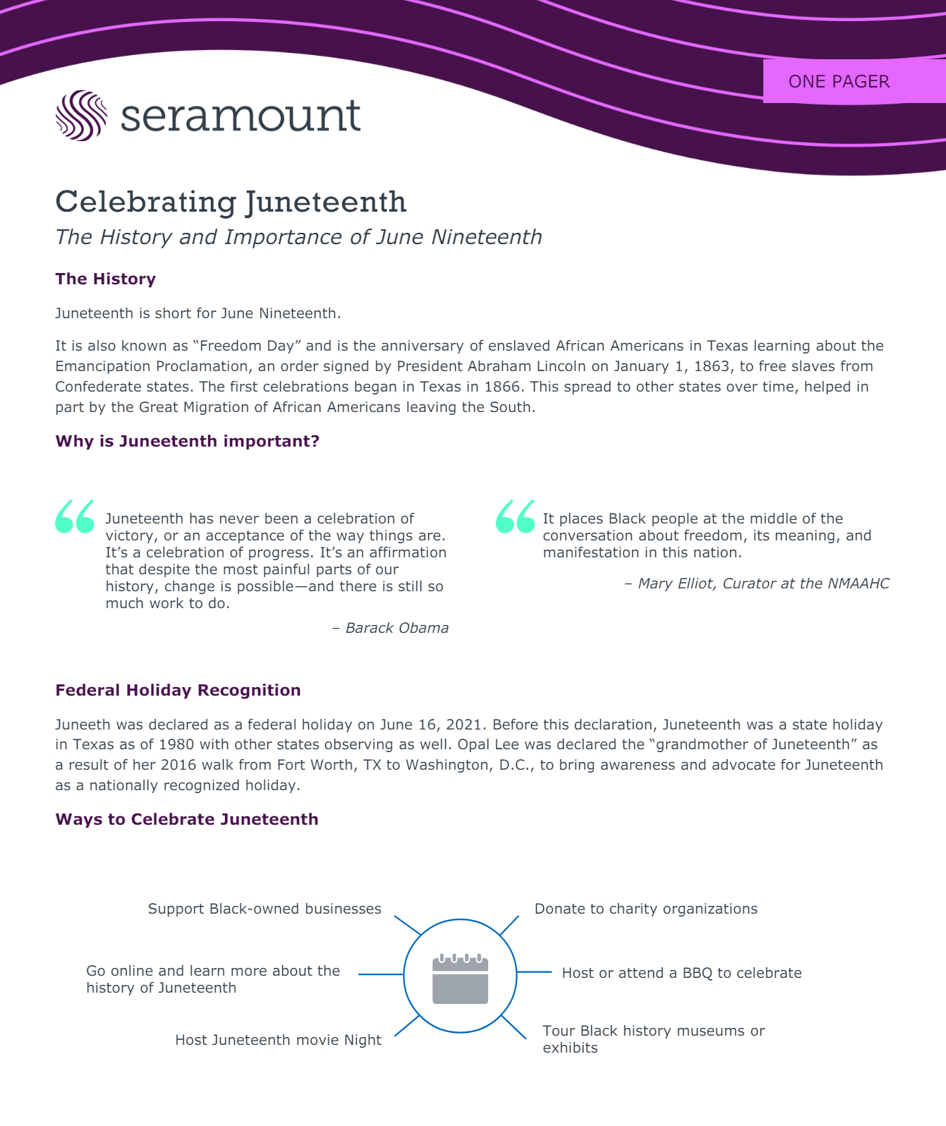 Dive into the historical roots of Juneteenth and discover ways to commemorate this important day with our informative one-pager, tailored to foster employee appreciation and celebration.