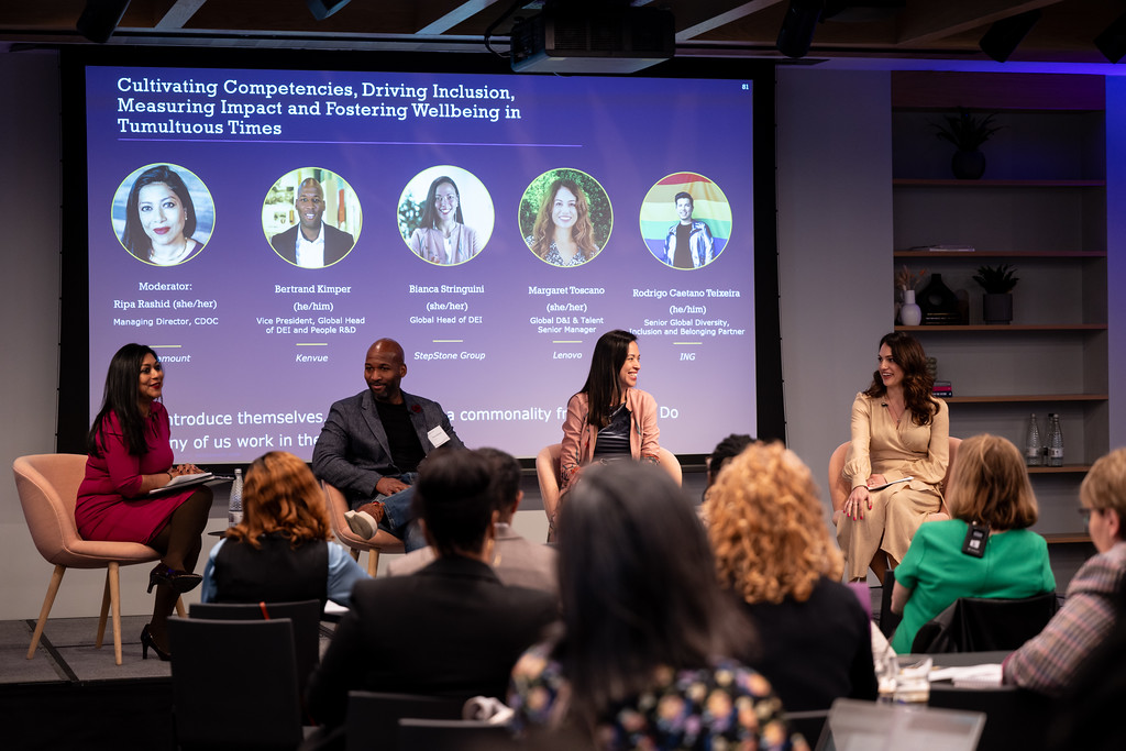During a practitioner panel, speakers shared what inclusion looks like across the globe. In APAC, DEI efforts may include things like married/non-married statuses or rural/urban divides. In Brazil—where more than half of the population identifies as Black or of mixed African descent compared to 13% in the United States—leadership demographics still mirror one another, with just 6% representation. It’s a reminder that even shared challenges require localized solutions.